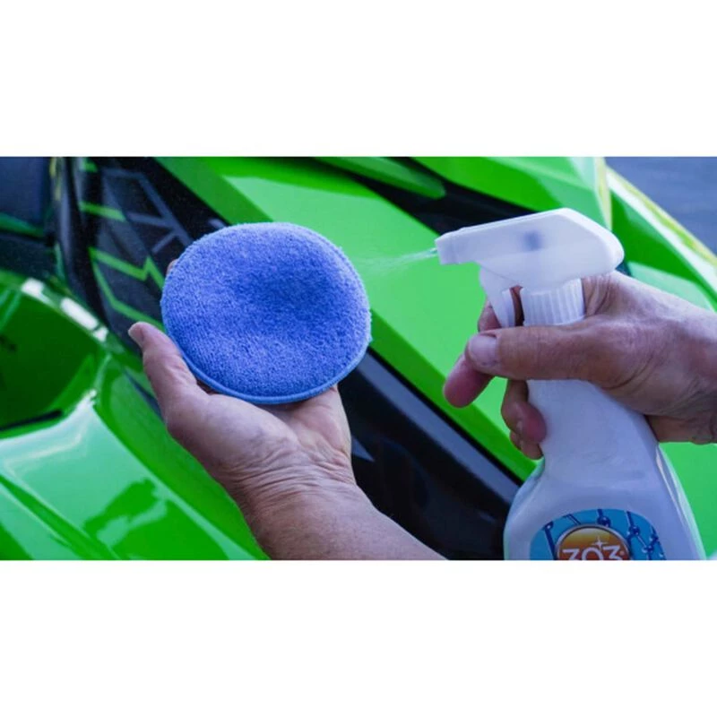 The dynamic graphene oxide formula contained in 303 Marine Graphene Nano Spray Coating reduces the surface temperature of paint. Doing so ensures that water cannot dry and embed itself into the surface, causing hard water spots. Any water spots that show up will be on top of the coating. Any instances of lingering water droplets are easily wiped away with a microfiber towel or detailer. Last but certainly not least, the product is easy to use — simply apply with a microfiber applicator, and buff off. It can even be applied in direct sunlight without the worry of streaking or residue.