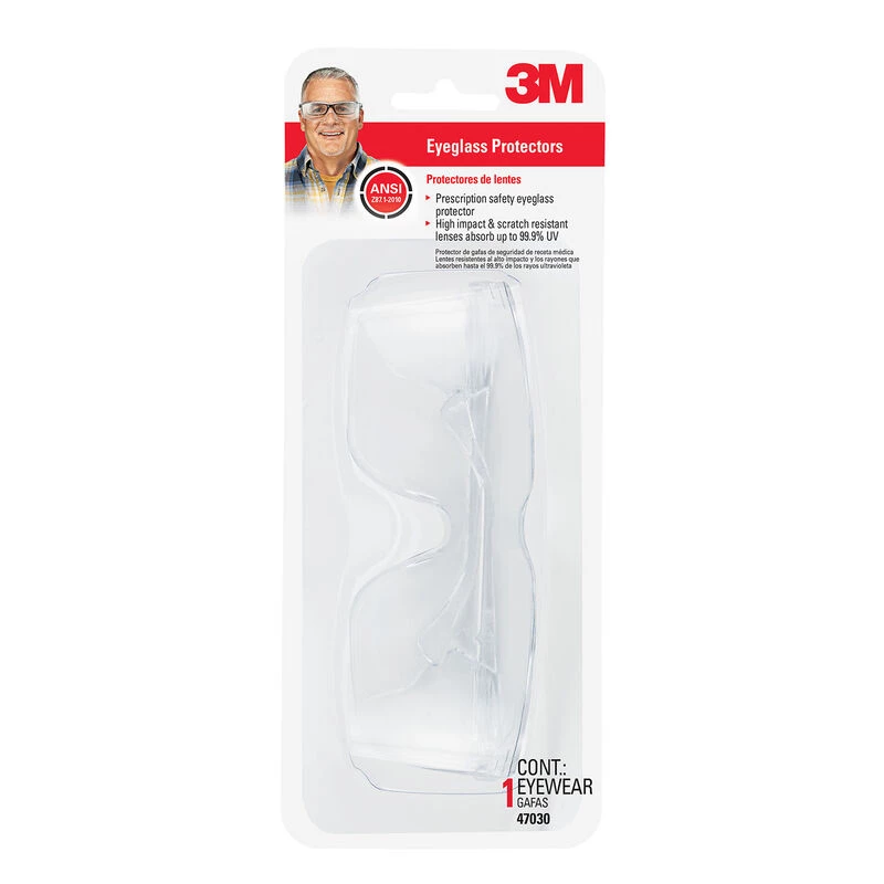 3Mâ„¢ Eyeglass Protectors offer excellent protection for those who wear prescription eyewear. Featuring clear lenses, these are best suited for indoor applications and for outdoors when a tinted lense is not desired or glare is not a factor. Designed to be worn over prescription glasses, 3M Eyeglass Protectors work with your life so you can pay attention to what counts.