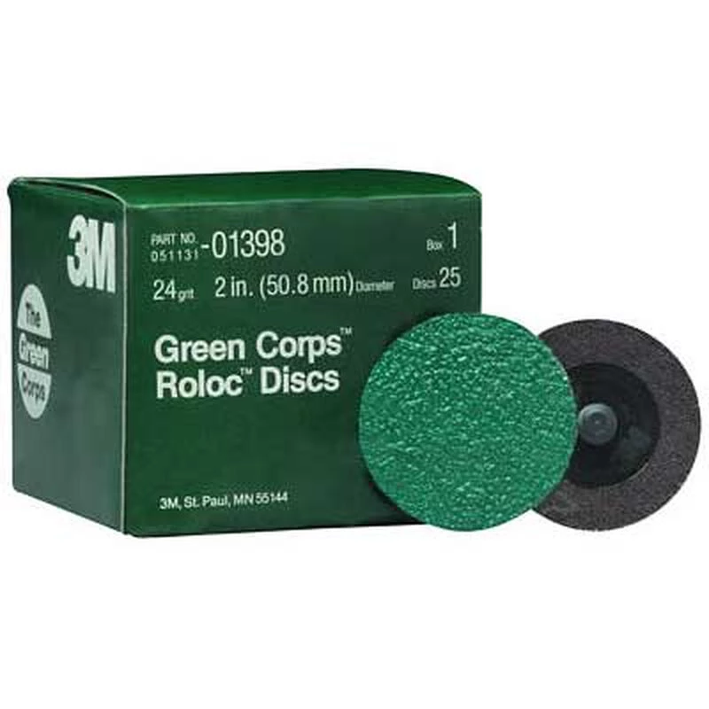 Made from self-fracturing, coarse aluminum oxide, the Roloc™ disc stays sharper longer for an aggressively sharp cut. Thanks to a versatile Roloc™ attachment system, these discs work with any ¼” drill or air tool while securely locking into place with a simple twist. The attachment system also allows for easy disc removal. 3M bonded the abrasive grains to a heavy, reinforced cloth backing with heat-resistant resin for durability.