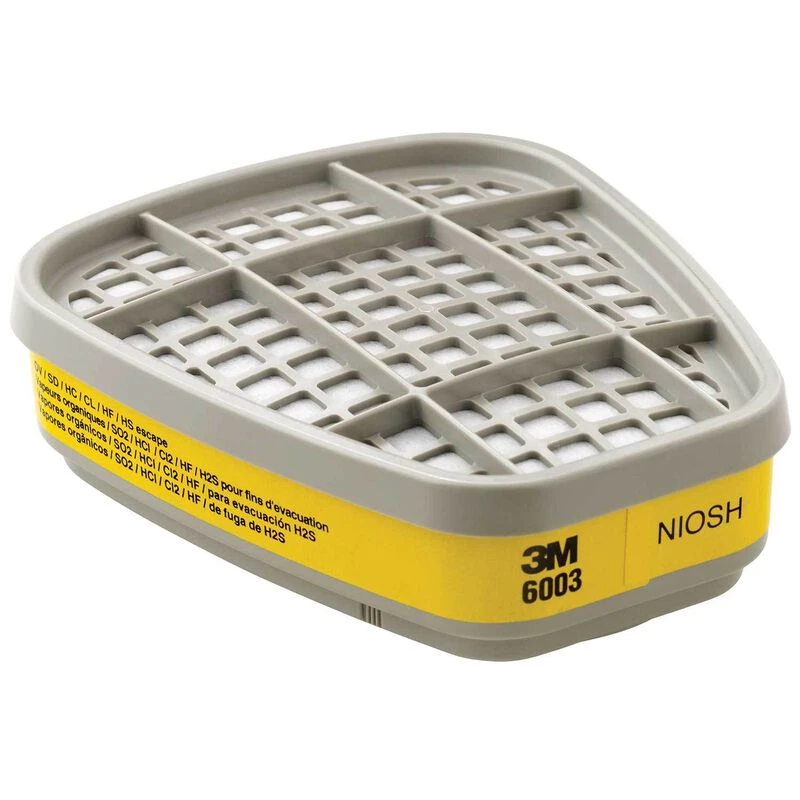 The 3Mâ„¢ Organic Vapor/Acid Gas Cartridge 6003 helps provide respiratory protection against certain organic vapors or acid gases. Respirator cartridges work with 3Mâ„¢ Half and Full Facepiece 6000, 7000 and FF-400 Series Full Facepiece respirators.