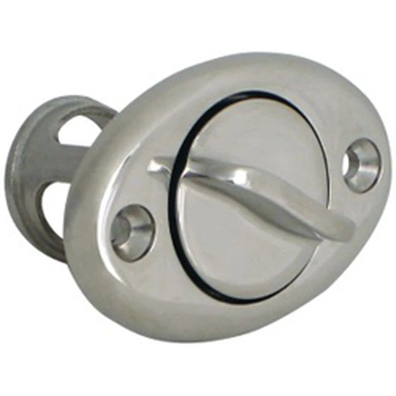 Threaded removeable plug. Retentionsystem keeps plug fromgetting lost. Large 7/8″ (27mm) hole for servicing stern drives.Highly polished 316 stainless steel. Lifetime warranty.