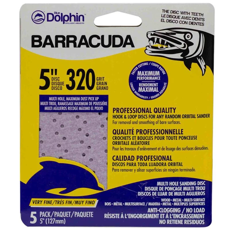 The Barracuda Anti-Clogging/No Load Hook and Loop Series features Blue Dolphin’s Premium P-Graded White Aluminum Oxide with their unique open-coat anti-clog technology. Resin bonded to heavy duty C-wt backing, this series is durable, easy to use and yields excellent results on multiple surfaces. For power sanding, Available in a wide variety of grits.