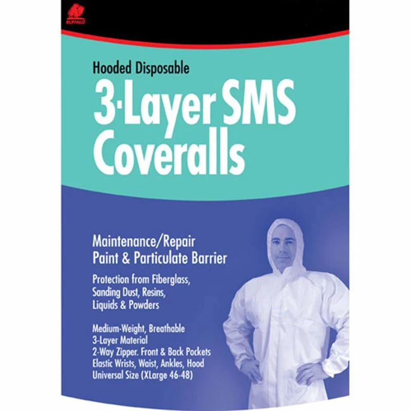 Good economy grade hooded coveralls for paint and particulate barrier protection. Very breathable, lightweight, single layer yet durable polypropylene protects against liquids, sprays, powders, and sanding dust. Zipper front with elastic wrists, ankles and waist.