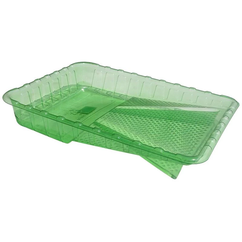 Economy recycled 1 quart capacity paint roller trays for 9 inch rollers. Made from recycled plastics, solvent resistant roller tray.