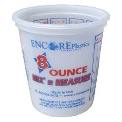 Graduated measurements make mixing easy and accurate. Translucent plastic cup, graduated in ml. and oz.