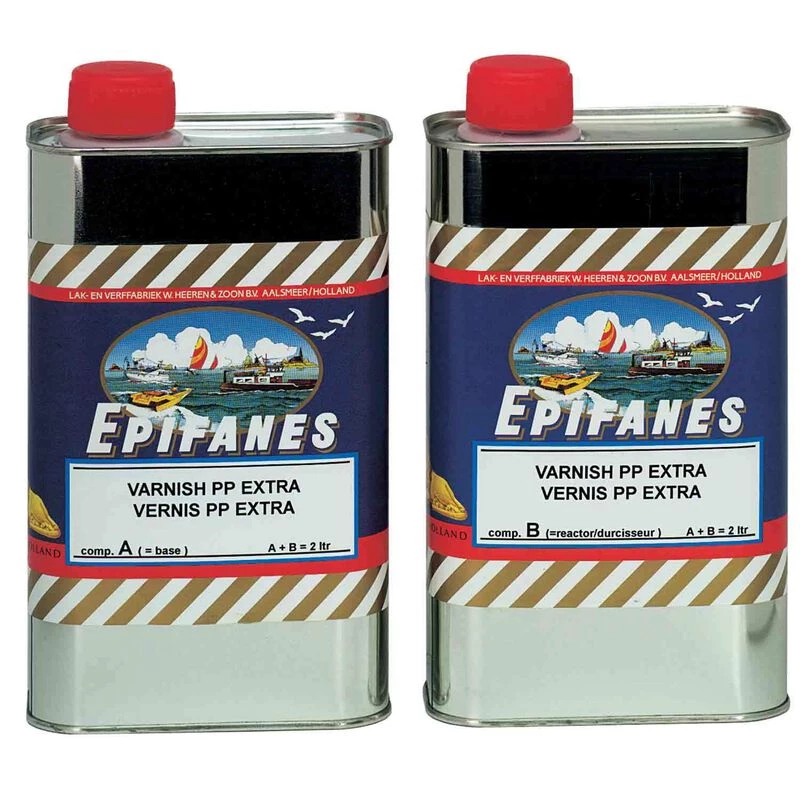 Combining excellent impact and abrasion resistance with a short drying time between coats, PP Varnish Extra is a great choice where multiple coats are desired in a short period of time. PP Varnish can be applied on all types of interior and exterior wood as an insulation coat, sealer, or filling coat for one- or two-component or synthetic varnish systems. For maximum resistance to UV light, topcoat with one or more coats of Epifanes Clear Varnish or Wood Finish Gloss. Two-liter (2.12qt.) kit.