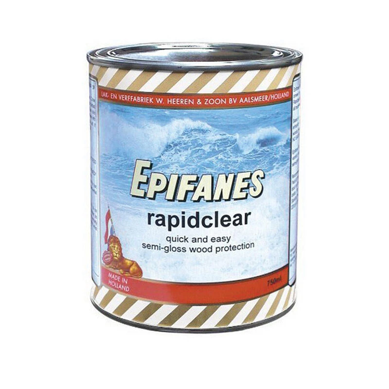 Epifanes RapidClear UV-resistant semi-gloss wood finish, based on modified alkyd/urethane resins, is a quick and easy alternative to conventional varnish. This quick-drying finish ensures long-term protection and enhancement of all interior and exterior marine and household woods above the waterline. RapidClear bonds extremely well to teak and other oily woods, prevents discoloration and emphasizes the natural grain of the wood.