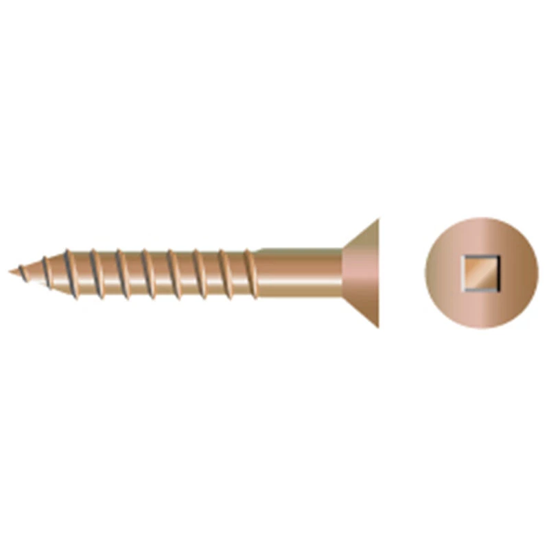 Traditionally, flat head silicon bronze screws have been the choice of boat builders for hull planking because of their excellent corrosion resistance below the waterline. But there are well suited for many modern applications as well. With a square drive head, these tapping screws can be easily driven by cordless impact drivers to install interior hardware, assemble cabinetry or give a traditional look to bronze hardware installations. The aggressively cut straight threads provide excellent holding power in pre-drilled holes without the use of a tapered drill bit. Use caution not to over-tighten silicon bronze screws during installation; they are softer than commonly used stainless steel fasteners.