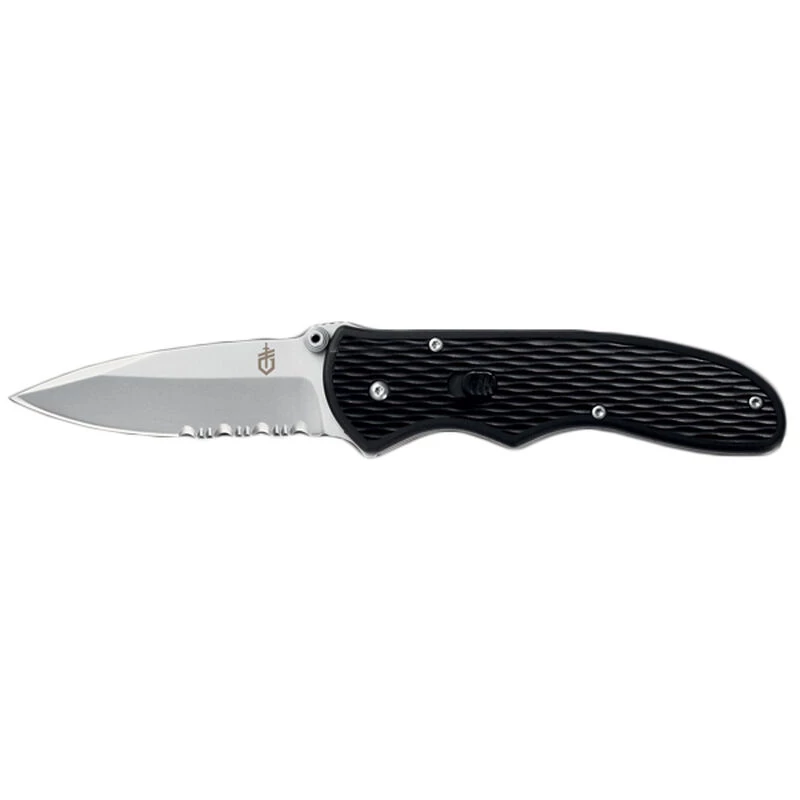 This spring-assisted, serrated-edge knife opens fast real fast! The Fast Draw™ can be opened using the thumb stud. It’s also lightweight and the serrated blade is made of high-carbon stainless steel. The black handle is made of durable, glass-filled nylon.