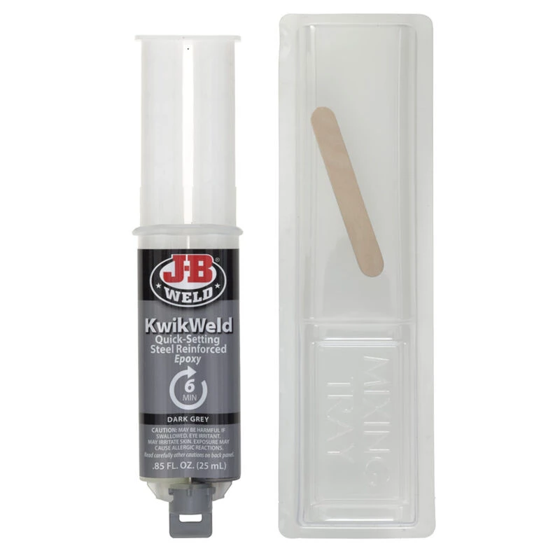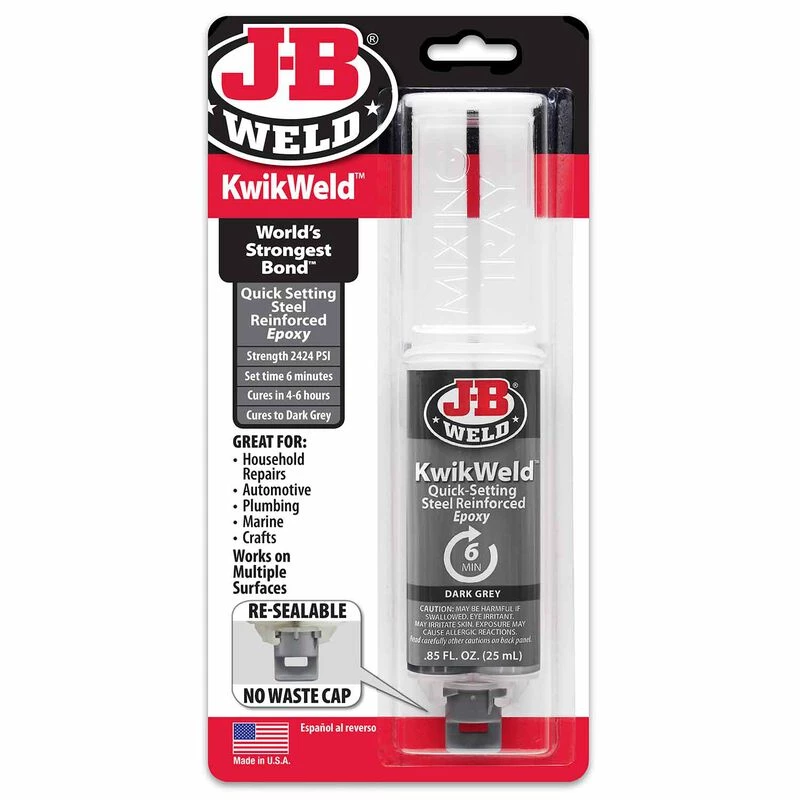 J-B Weld KwikWeld Syringe is a fast setting version of The Original J-B Weld two-part epoxy cold weld system that provides strong, lasting repairs to metal and multiple other surface types.