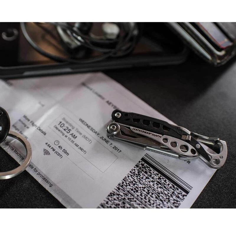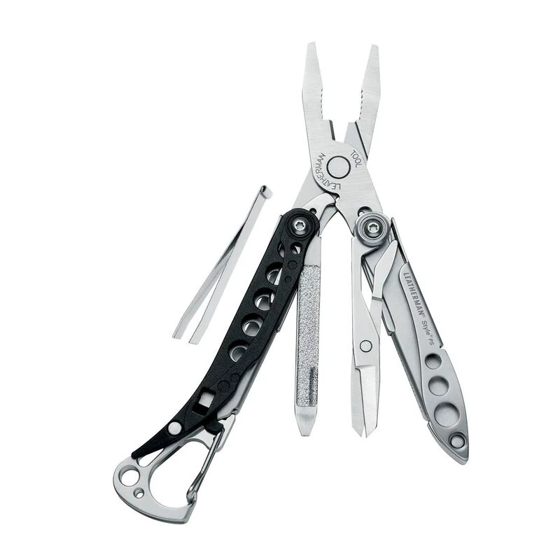 The handy Leatherman Style PS Multi-Tool is one unique, travel-friendly, multi-tool. With spring-action pliers, a file, scissors, tweezers, bottle opener and mini-screwdriver, you’ll never be without your most necessary tools; now even when you travel! Fits in a pocket or clips on your pack or bag for easy portability. So stylish it’s almost a shame it fits so easily in your pocket.Â