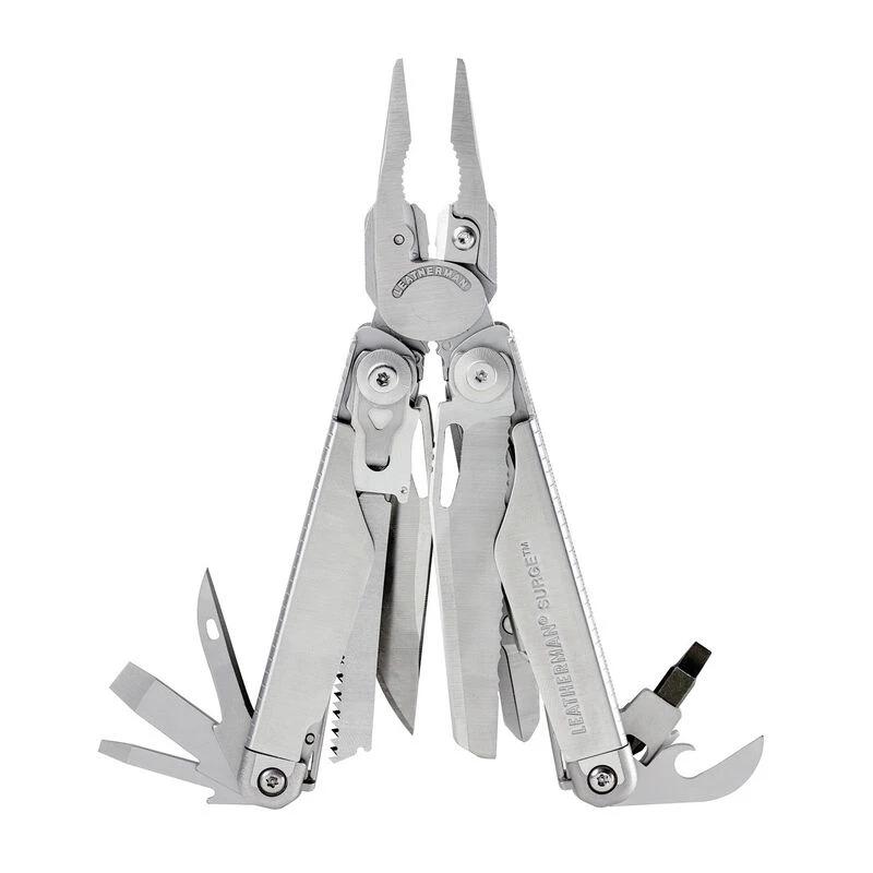Leatherman’s Surge is one of their two largest multi-tools. A real powerhouse, the Surge is built with Leatherman’s largest pliers, longest multi-tool blades and easy-to-use locks. A unique blade exchanger, replaceable 154CM wire cutters and four outside-opening blades give you quick access to the tools you use most. The Surge was built for tough jobs and the hands that do them.