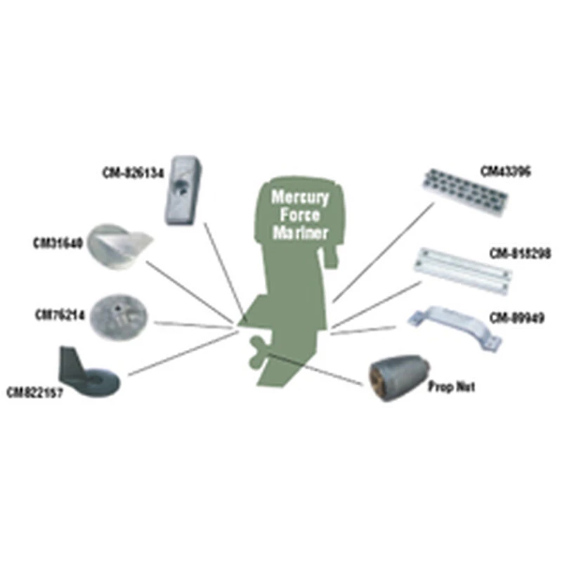 | Option | Outboard Anode, Mercury/Force/Mariner, Zinc, CM89949Z, Outdrive Anodes, Magnesium, CM762145M, Outboard Anode, Mercury/Force/Mariner, Zinc, CM76214Z, Outboard Anode, Mercury/Force/Mariner, Zinc, CM822157C2Z, Outboard Anode, Magnesium, CM31640M, Outboard Anode, Mercury/Force/Mariner, Zinc, CM826134Z, Outboard/Outdrive Anode, Honda, Mercury, Force, Mariner, Mercruiser, Zinc, CM31640Z, Outboard Anode, Mercury/Force/Mariner, Zinc, CM818298Z, Outboard Anode, Magnesium, CM76214M, Outboard Anode, Aluminum, CM762145A, Outboard Anode Kit, Magnesium, CM826134KITM, Outboard Anode Kit, Magnesium, CM818298KITM, Outboard Anode Kit, Aluminum, CM826134KITM, Outboard Anode Kit, Magnesium, CM826134M, Outboard Anode Kit, Aluminum, CM818298KITA, Outboard Anode Kit, Aluminum, CM31640KITA, Outboard Anode, Magnesium, CM818298M, Outboard Anode, Mercury/Force/Mariner, Zinc, CM43396Z |