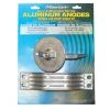 Used in saltwater, aluminum anodes protect better and last longer than zinc. Used in brackish water, aluminum anodes are superior to zinc which can “passivate” and not work at all or magnesium anodes which corrode too rapidly. Aluminum anodes are also lighter than zinc and contain no cadmium which is a substance of environmental concern. Offered with hex-head stainless steel machine screws.