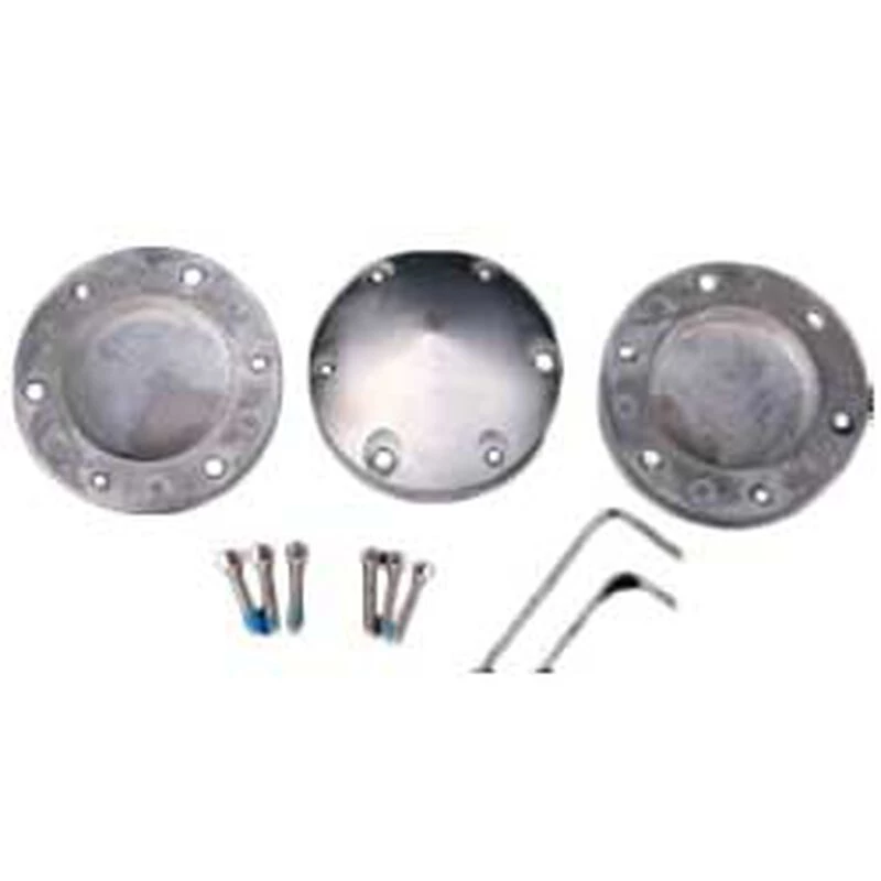 The Zinc Box includes: 3ea 70mm zincs, 3ea 70mm Zinc Screws, and a #4 Allen wrench for the screws. For 1 1/4″ to 1 3/8″ (30mm to 35mm) shafts. Screw holes are 2″ center to center.