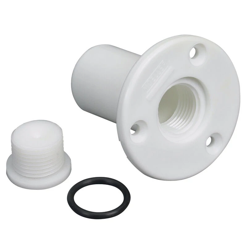 This nylon drain tube won’t rot, bend or mildew, fits flush to your transom, and allows water to drain when your vessel is trailered. A rubber O-ring makes a watertight seal. Can be loosened with a flat-head screwdriver.
