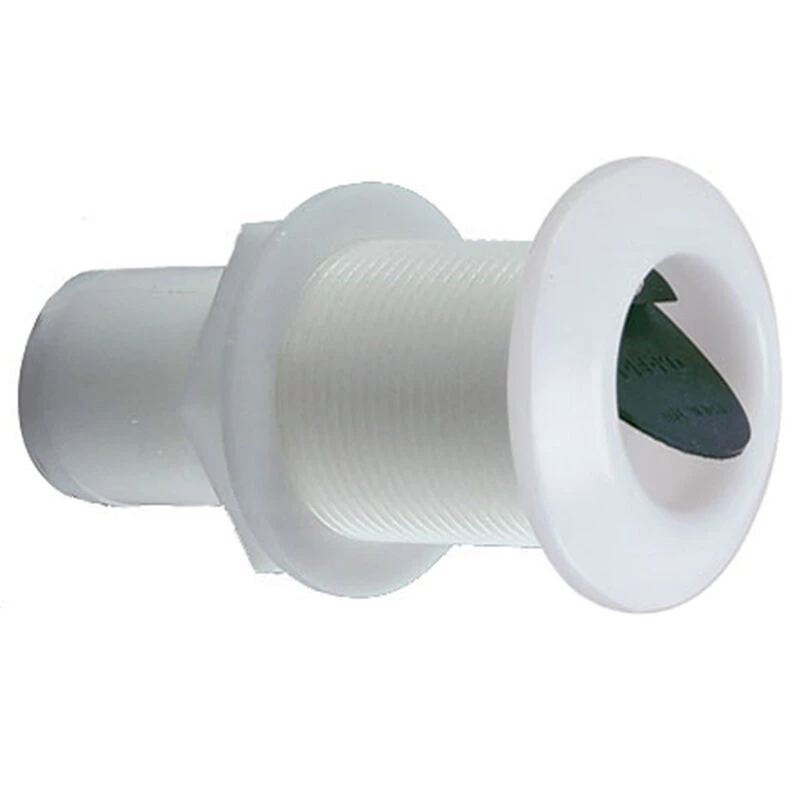 Thru-Hull Scupper with Recessed Flapper, Molded White Plastic, Soft Black Flapper Valve.
