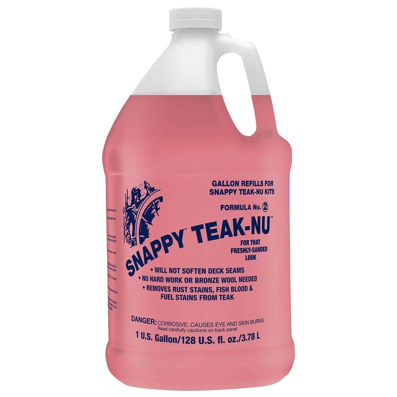 An easy and affordable way to recondition teak, this two-step system removes mildew stains, fuel, fish blood and many other hard to remove stains without the hassle and expense of sanding. Gallon size of Neutralizer, part two of two-step cleaning. Step one of the Snappy Teak cleaning process see our Model Number 12599791.