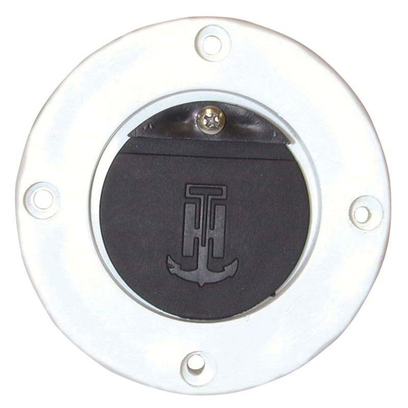 Designed to mount over a drain tube or directly over a 1 1/2″ thru hull with four screws. Features a “curl proof” flapper. Can be retrofitted over other manufacturer’s rubber flapper assemblies. White frame, Black flapper.