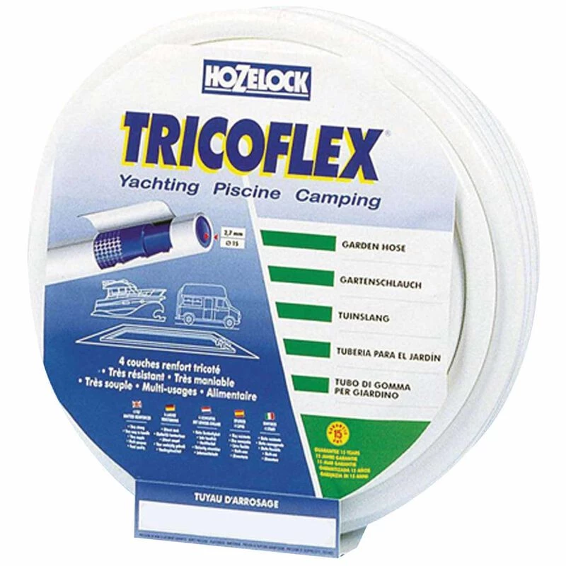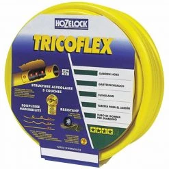 Five-layer hose with a UV-resistant outer cover, knitted reinforcement and smooth bi-layer inner tube. The multi-layer structure with exclusive knitting results in great flexibility, easy handling and resistance to deformation under pressure. The smooth internal wall maintains an even flow. Tricoflex hose is also lightweight due to its foam structure.