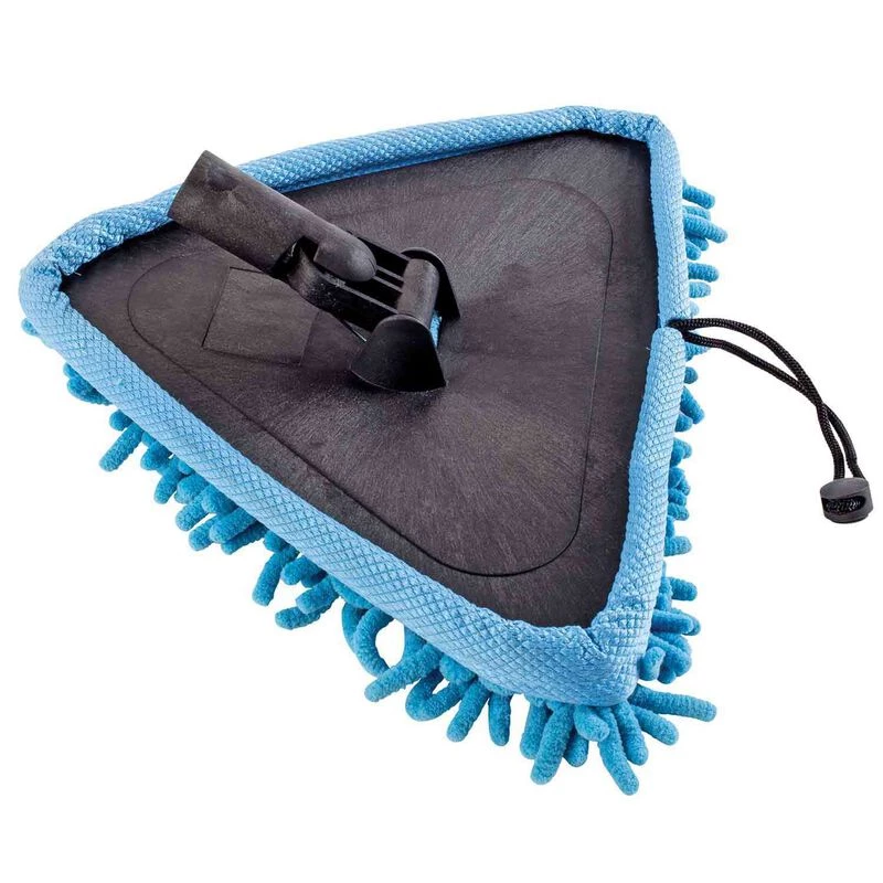 This agile cleaning tool pairs a highly absorbent, triangular microfiber shag pad with a two-way knuckle at the attachment point. The triangular shape combined with the two-way swiveling action makes this the perfect tool for mopping, drying or dusting difficult-to-reach areas, including overhead areas, windows and cockpit inside corners. Swivel end quickly attaches to West Marine Admiral Handles to extend your reach. Microfibers will not scratch gelcoat, polished metals and sensitive clear plastic.